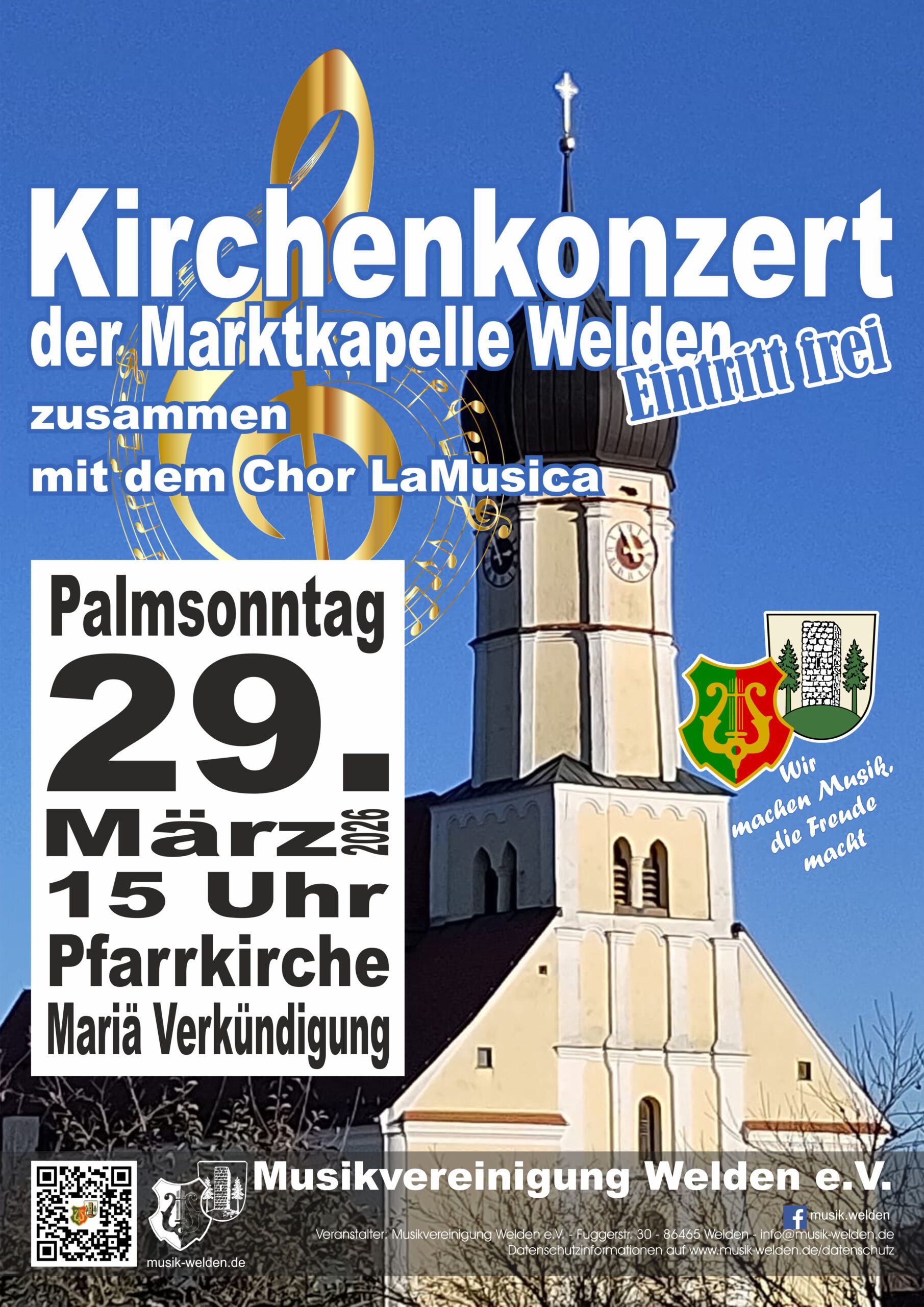 Die Musikvereinigung Welden e. V. freut sich, Ihnen zum Beginn der Karwoche mit diesem Konzert eine musikalische Freude bereitet zu haben, und wünscht Ihnen ein gesegnetes und frohes Osterfest.